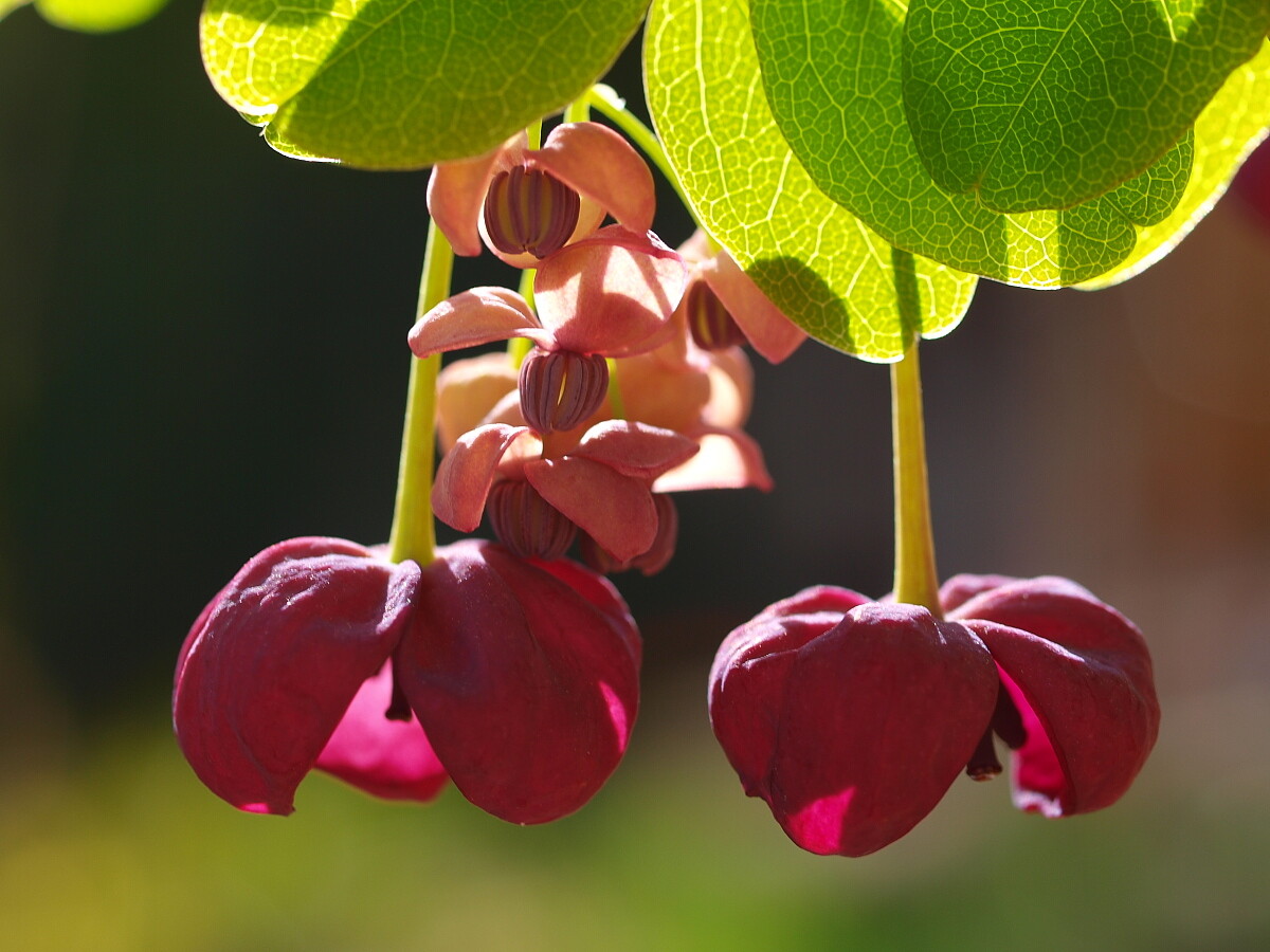 weibliche und männliche Blüten der Akebia quinata, auch Schokoladenwein genannt wegen des feinen Duftes