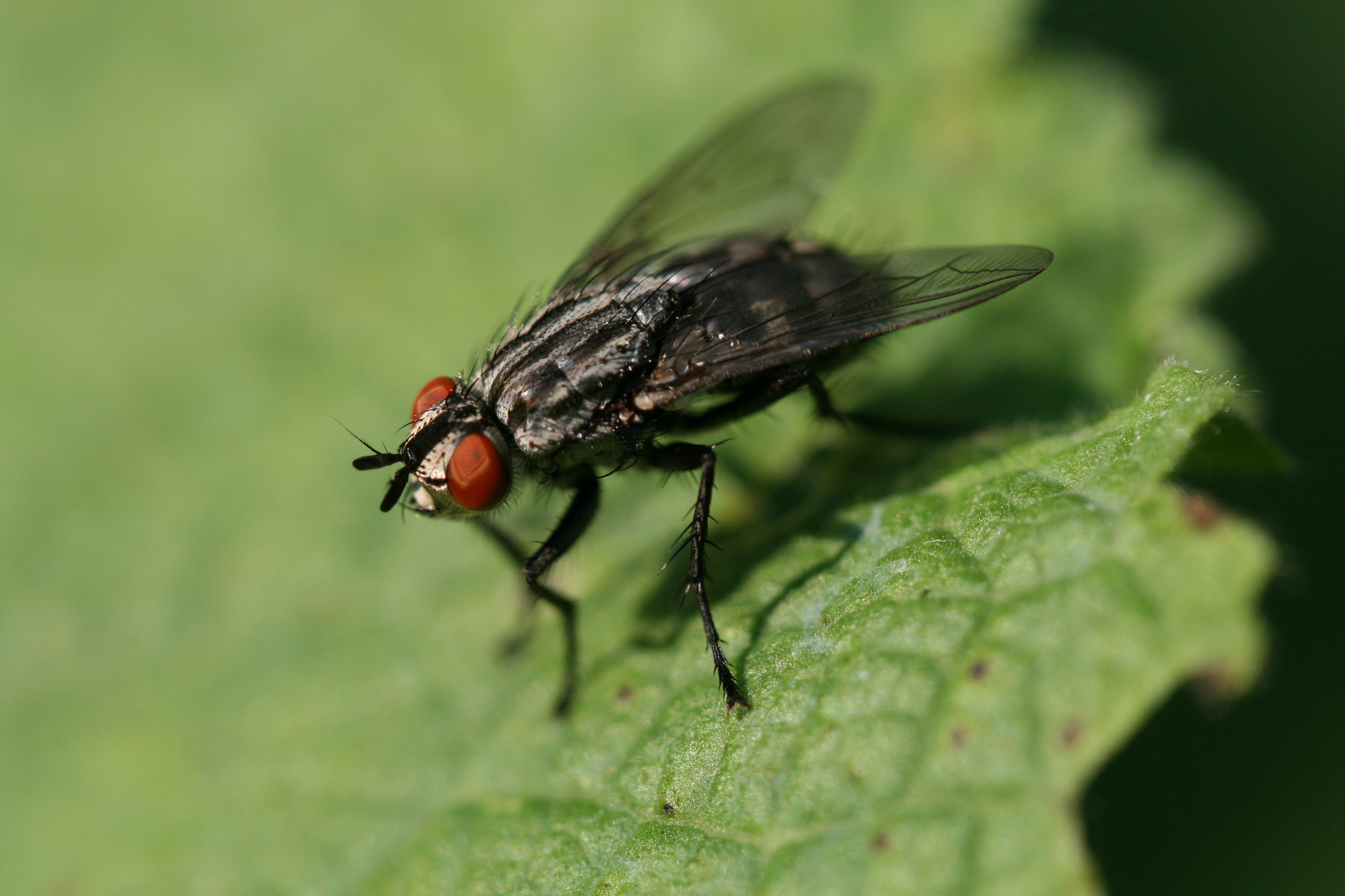 Fliegen zu fotografieren ist nicht ganz so einfach. Da sie mit ihren Facettenaugen sehr gut sehen können, sind sie meist schon verschwunden ehe man den Auslöser gedrückt hat. Diese Fliege war wohl in der Sonne eingeschlafen, denn sie blieb beim fotografieren ruhig sitzen.