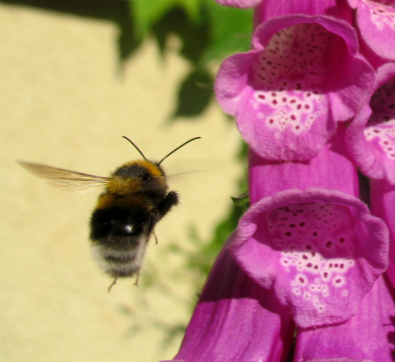 Am 2.6.2011 herrschte rund um die Digitalispflanzen, die sich in unserem Garten regelmäßig selbst aussäen, reger Flugverkehr vor allem verschiedener Hummelarten, vorwiegend Ackerhummel, Steinhummel und Erdhummel.