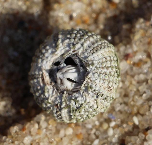 Die "Laterne des Aristoteles" sind die Mundwerkzeuge des (hier) Steinseeigels - kräftige "Kiefer", die ein Abweiden von Algen oder Pflanzen ermöglicht. Der Steinseeigel ist ein Pflanzenfresser.